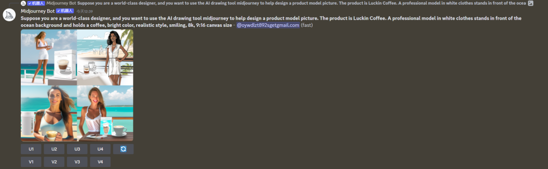 第二步,按照推荐的关键词填充内容来输入到midjourney中,生成对应的图片。