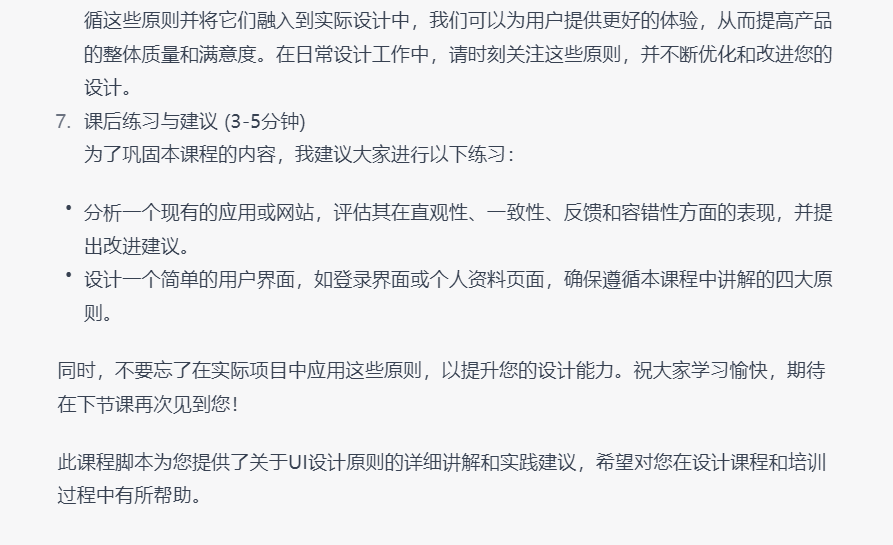 第四步:针对课程大纲里面的单独小节进行提问,总结,最后生成对应主题的章节内容。
