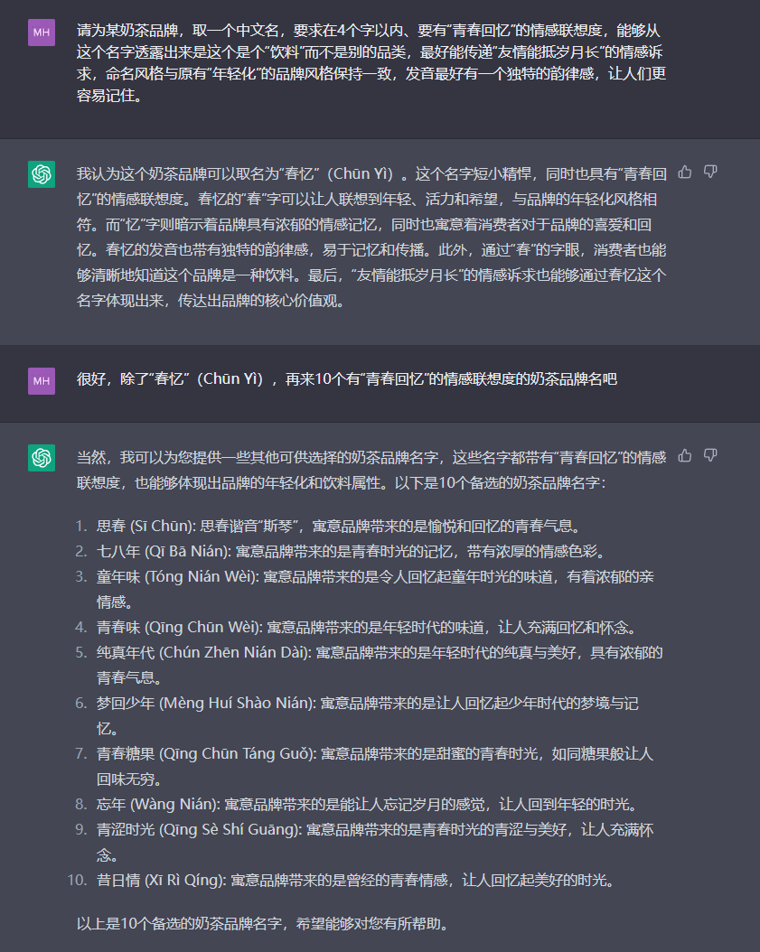 最好能传递“友情能抵岁月长”的情感诉求(具体价值观/理念要求),命名风格与原有“年轻化”的品牌风格保持一致(体现XX品牌风格),发音最好有一个独特的韵律感,让人们更容易记住(名字的具体发音要求)。